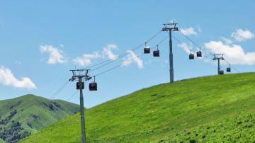 那拉提空中草原是新疆新源县那拉提旅游风景区的组成部分之一,从远处看,一半是草原一半是雪山。在蓝天白云下,雪山,赛马场,草原,山丘,溪流相互交融,宛如一幅美丽的风景画。
