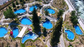 新疆天赐圣泉度假酒店温泉其水质透明,出水口水温为53°C,日出水量达3000余立方米。有室外天然温泉、室内大温泉泳池、儿童水上乐园、健身棋牌演艺、露天音乐静吧、汗蒸广场、干湿蒸房、景观休息大厅、保健养生SPA、休闲茶艺、各类自助美食、中零点餐厅、特色餐包、宴会大厅、智能会务服务、商务客房。