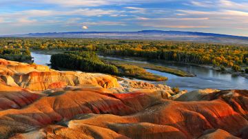 在这个美丽富饶、神秘莫测(蒙古语“喀纳斯”的含义)的湖边,你能够看到清澈宁静的湖水,湖水还会随着季节和天气的变化而时常变换颜色。环湖四周混合了云杉、冷杉和西伯利来落叶松的原始森林,阳坡被茂密的草丛覆盖,不同的植物群落层次分明,每至秋季更是万木争辉:金黄、殷红、墨绿各呈异彩。
