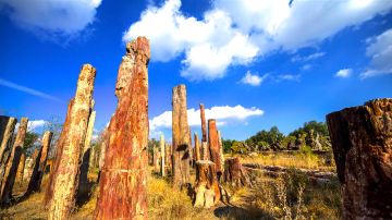 新疆古生态园汗血马基地位于乌鲁木齐市区鲤鱼山上,始建于2005年,占地近300亩,园内有硅化木、胡杨木、黑铁陨石、草原石人、硅化木、普氏野马、汗血宝马等大量珍稀生态资源,园区还配套有 “野马-丝路驿站文化主题酒店”。这些景观融合在一起,形成了新疆古生态园“马、画、园、店”四大主题。
