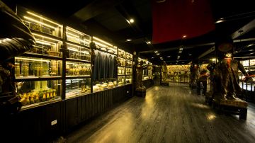 新疆民族风情展馆在一楼,介绍了维吾尔、哈萨克、蒙古、锡伯等12个新疆主要民族的民俗风情,里面可以看到他们的乐器、生活用品和毡房屋子等展示,还有帽子、围巾等特色服饰,色彩大多艳丽,极具新疆的少数民族风情。比较有特点的是锡伯族的房屋,由于该族是由东北迁来,可以看到他们居住的屋子里还有东北传统的火炕。另外,充满俄罗斯族风情的家具和餐具用品等也十分具有特色。