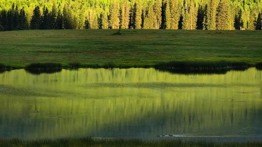 潜龙渊位于天山天池脚下两公里处的路旁,是在远古冰川运动中形成的堰塞湖,主要依靠天山天池暗流补给水源。潜龙渊水面状如满月,池水清冽幽深,四周塔松云杉环抱,池中倒影相映成趣。皓月当空、静影沉璧、清景无限,因而也被称作龙潭碧月。