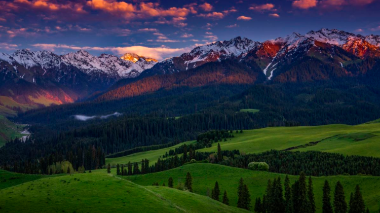 喀拉峻景区位于伊犁特克斯县的县城东南侧,距离县城的车程约30公里,是新疆知名的大草原之一,也是游客游玩新疆西线(伊犁环线)时不能错过的著名景点。喀拉峻景区呈连绵的丘陵状,背靠巍峨雪山,草原上还有树林、花海等景观,景色辽阔秀美,是观光摄影的胜地。