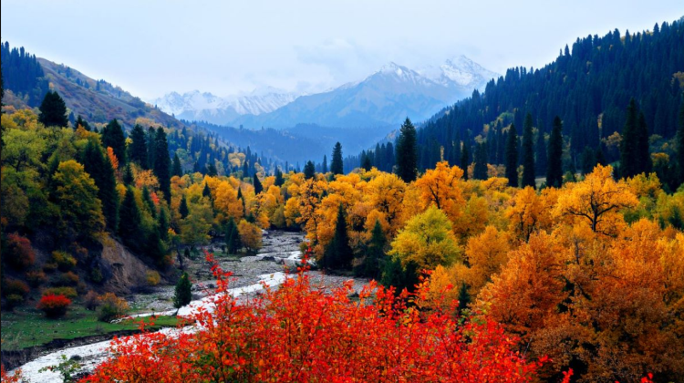 果子沟全长28公里,地势险要,成吉思汗西征时,始凿山通道,曾架桥48座,可见路之险峻。清乾隆时改建为42座,现在仍是乌伊公路干线的重要路段。虽然如今的果子沟已不再是以果树著称,但仍拥有迷人的风景,沟内幽谷逼仄、奇岩异石、峰峦耸峙、松桦繁茂、山花烂漫、飞瀑涌泉、风光秀丽,堪称自然美景中的绝色之景。