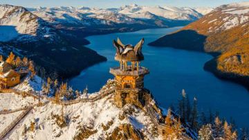 禾木村中所有的房屋都是朴素的小木屋,散乱地分布在山间的谷地里,当地少数民族同胞在院子里劳作着,显得古朴安静。禾木河在村旁流过,河水是浅蓝色,非常的清澈。村子周围还有草原、白桦林等,风光优美。冬天的时候,山顶处则开始积雪成为了一座座小雪山,好像一个童话世界。