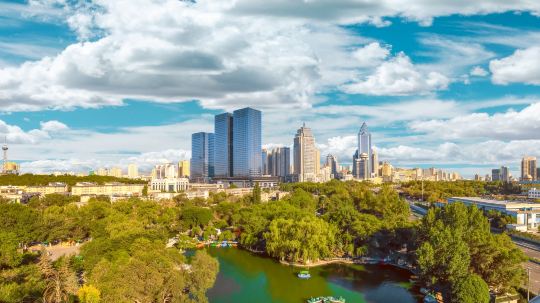 红山公园的主体红山由紫色砂砾岩构成,山体呈赭红色,十分独特。在园内可以漫步林间、泛舟湖上,可以参观佛寺雕像等人文建筑,可以体验到各种游乐项目,登上山顶还能俯瞰市区的全景,游玩内容丰富,是区内放松休闲的好去处,也是外地游客游玩乌市不能错过的景点。