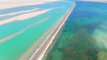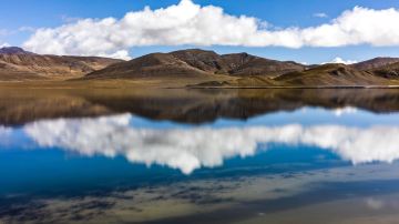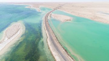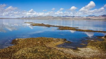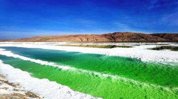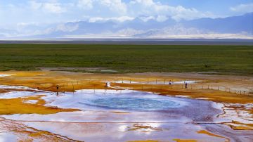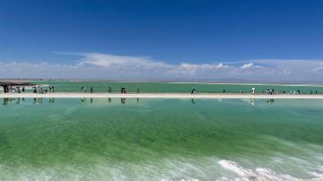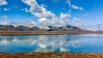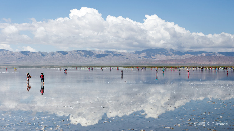 茶卡盐湖是一座有三千多年历史的盐场,湖水含盐量很大,会自然结晶成为一片白色的湖面,将天空、云朵和对岸的山都倒映在湖里,景色非常漂亮。游客还可以赤脚走到湖面上观看和拍摄自己的倒影,犹如天空之境。