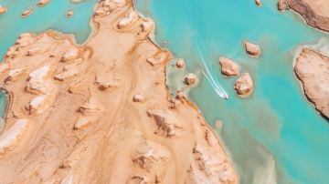 栈道的西侧尽头便是游轮的码头了,乘坐游船游湖是青海湖二郎剑景区的重点,游船分为两种,一种是约90人座位的中型高速游船,可以在湖面游玩约20分钟,然后将游客送至二郎剑半岛的尽头处。另一种则是大型游轮,可以游湖约50分钟,然后返回到广场码头,船上有咖啡厅、餐厅、贵宾室等,比较华丽休闲。
