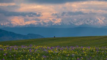 阿克塔斯一词来源于哈萨克语,意为白石山,因山石光白而得名,象征圣洁美好。阿克塔斯草原是一个典型的空中草原,被称为“小喀拉峻”。这里处处绿草茵茵,山花烂漫,雪岭云杉交相辉映,高山白云相依相伴,一步一景,如诗如画。