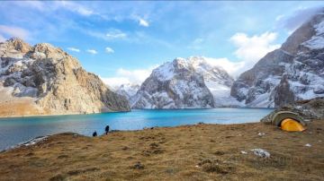 ['清澈的湖泊被雪山环抱']