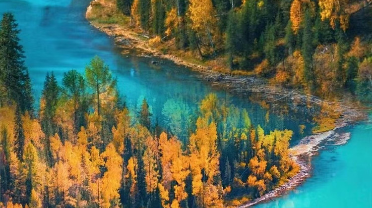 可可托海景区位于北疆阿勒泰地区的富蕴县东北侧,是一般游客游玩北疆喀纳斯环线路上会前往的重要景点。景区里有幽深的峡谷、清澈透明的河流、陡峭秀丽的山峰,环境非常优美。在峡谷之间还有大面积的桦树、杨树和松树林,适合秋天前来,此时树叶金黄绚烂,而森林背后的山顶此时也开始积雪好像漂亮的雪山,山林河水相映,是秋色摄影的不错之选。