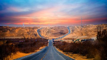 这条沙漠公路是由交通部门全额投资并沿河流(和田河)修建的我国一条纵穿塔克拉玛干沙漠的等级公路。北起天山南麓绿洲城市阿拉尔市南口镇(十二团),南到昆仑山北缘和田市玉龙喀什镇。其中沙漠地段长407.567公里,非沙漠地段长16.805公里。地址:China National Highway 217 & Arele Service Area, Luopu Xian, Hetian Diqu, Xinjiang Weiwuerzizhiqu, China