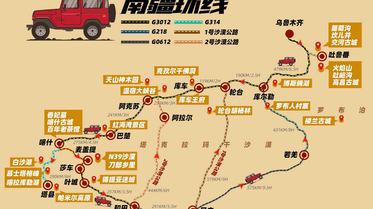 - 缤纷景点:南疆塔克拉玛干环线;塔县古城、喀什古城、克孜尔千佛洞、库车王府、莎车王陵、叶尔羌王宫,带你走进神秘南疆。