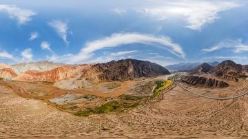 乌恰五彩山位于新疆克孜勒苏柯尔克孜自治州乌恰县托云乡,此处乌恰五彩山有两座,一座又名古海沉船,另一座是僧帽山。僧帽山就是当年唐僧西天取经路经丝绸之路南道帕米尔高原时,由于帕米尔高原海拔高、风沙大,气候变化无常,将唐僧的帽子刮落此处,化成一座五彩的大山。据专家考证:此山形成于第三系,属红沙岩和石膏层叠加而成的雅丹地貌。