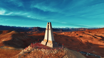 中国西极石碑位于乌恰县西极时光景区,标志着中国大陆西端的地理坐标,石碑周围的壮丽景色令人印象深刻。