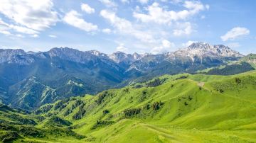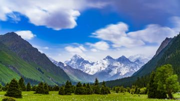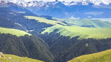 每年6-9月,那拉提旅游风景区一片碧绿,还有野花盛开,气候适宜,河谷、山峰、深峡、森林交相辉映,是旅游胜地。
