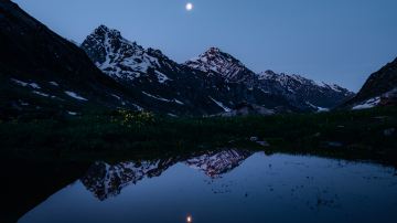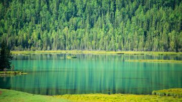 潜龙渊位于天山天池脚下两公里处的路旁,是在远古冰川运动中形成的堰塞湖,主要依靠天山天池暗流补给水源。潜龙渊水面状如满月,池水清冽幽深,四周塔松云杉环抱,池中倒影相映成趣。皓月当空、静影沉璧、清景无限,因而也被称作龙潭碧月。