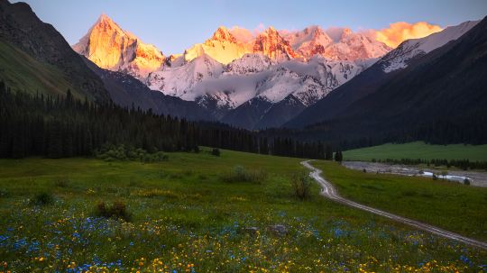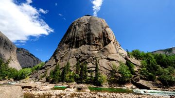 水磨沟附近则适合夏天时前往,向西步行一小段便有开阔的草场,每到夏天野花烂漫,非常漂亮,因此这里也有一片草原被称为百花草场。神钟山则是一座花岗岩奇峰,陡峭独立,十分奇特,是景区里的标志性山峰。