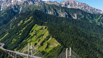 独库公路五分之一的地段处于高山永冻层,三分之一是悬崖绝壁,跨越了天山近十条主要河流,翻越了四个常年积雪的雪山,其驾驶难度极大。这里沿途风景只能用神奇来形容,从龟兹故城往东北方向沿国道217线前行,独库公路就开始一层层剥开它的神秘。沿途可欣赏唐不拉的仙女湖、火红的克孜利亚山地景观、险峻的峡谷风景、植被茂密的天山、浩瀚的草原和美丽的游牧风情。