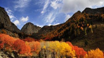位于景区门口不远处的白桦林和石门停车处附近的红叶沟都非常适合秋天观看,树叶或金黄或火红,都十分绚烂,秋天时林子背后的山峰也都开始积雪,好像美丽的雪山。此时树叶、河流和雪山相映,正是拍摄大片的好时机。
