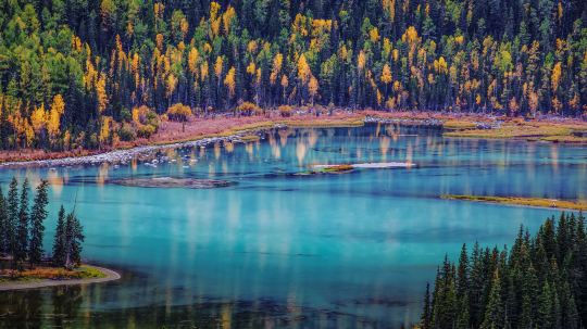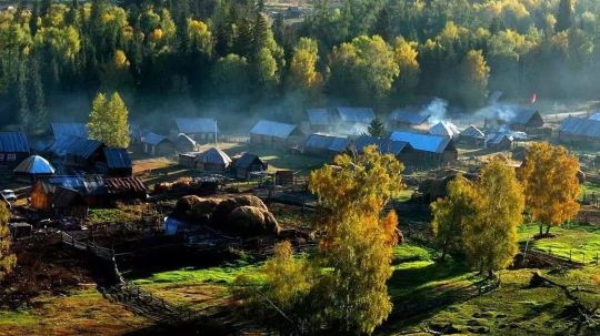 远离城市喧嚣,手工木材搭建的新疆禾木村,苍山碧水间宛如绚烂星斗,隐藏于自然怀抱。
