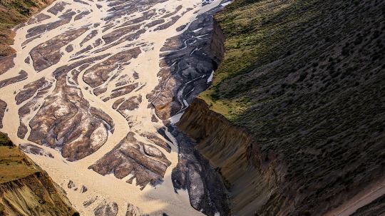 河水冲出天山后,切割独山子西南方向倾斜平原形成的神奇风光峡谷,峡谷两岸的阶地历历在目,至少可分9级,阶地面上是荒漠草原,生长着蒿类、针茅等。在独山子境内奎屯河流经独山子大峡谷之中峡谷近南北走向,峡谷谷壁悬崖陡峭,谷底流水时分时合,谷肩地面是荒漠草原,站在谷肩处遥望峡谷,呈现在眼前的是一幅典型的大峡谷景象。