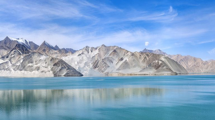 喀拉库勒湖景区位于“冰川之父”幕士塔格峰脚下,因湖水深邃幽黯,故名“喀拉库勒”,柯尔克孜语意为黑湖。