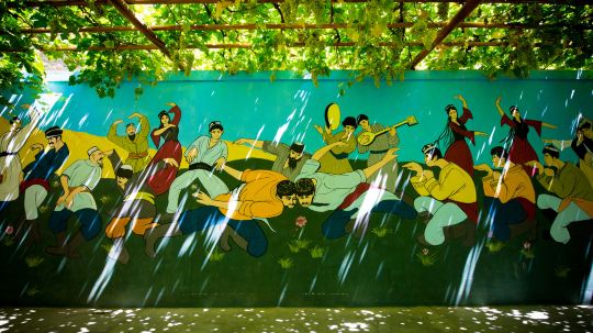 很久以前,阿力村长带领村民们历经千辛万苦,终于开凿出了村子里的第一条坎儿井,通水当天举办了盛大的庆典活动。阿力村长邀请了很多远方的客人,以热情的歌舞、美味的小吃、丰盛的瓜果招待来宾,并邀请嘉宾们参观这条刚刚通水的生命之泉-坎儿井,希望大家能够将坎儿井所展现的团结协作、自强不息精神宏扬四方。