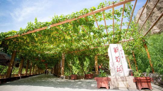一首《吐鲁番的葡萄熟了》用婉转悠扬的旋律与真挚动人的歌词,向人们描述了葡萄的甜美,著名女中音歌唱家关牧村用浑厚、深情的歌声送来了微风中绿茵下的葡萄,成就了一个名叫阿娜尔罕的维吾尔族姑娘和驻守边防哨卡的克里木的真实爱情。让吐鲁番的葡萄家喻户晓。 新疆吐鲁番有个地方叫葡萄沟。那里出产水果。五月有桑椹、杏子,七八月有香梨、蜜桃、沙果,到九十月份,人们喜爱的葡萄成熟了。吐鲁番的葡萄种植历史有3000年。 葡萄沟不仅仅是葡萄的博物馆,更是一处浴火修行的旅游胜地,也是国家第一批公布的5A级自然风景区。凡是来新疆旅游的,没有不来吐鲁番的;凡是来吐鲁番旅游的人,都要在领教过火焰山的炎热之后,钻入葡萄沟,享受冰火两重天的奇遇。 葡萄沟由游乐园、王洛宾音乐艺术馆、达瓦孜、阿凡提、绿洲葡萄园、五个游览区。在整个葡萄沟,还有一百多个维吾尔族农家乐家访点点缀其间。游走在葡萄沟葡萄的树荫下,欣赏葡萄沟的美景,走累了,可以盘腿坐在家访点的农家炕上,品尝葡萄、哈密瓜,品尝主人端上来的大块手抓羊肉,欣赏维吾尔古丽飞旋的舞蹈。