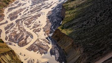 河水冲出天山后,切割独山子西南方向倾斜平原形成的神奇风光峡谷,峡谷两岸的阶地历历在目,至少可分9级,阶地面上是荒漠草原,生长着蒿类、针茅等。在独山子境内奎屯河流经独山子大峡谷之中峡谷近南北走向,峡谷古币悬崖陡峭,谷底流水时分时合,谷肩地面是荒漠草原,站在谷肩处遥望峡谷,呈现在眼前的是一幅典型的大峡谷景象。