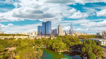 ['登上山顶俯瞰市区全景']