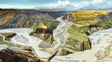 天山雪水及雨水流下来经过这里的土壤形成的冲积沟壑,在谷壁雕凿出这些奇特景观。峡谷是从山脚下开始,在草原上形成层次分明土壤层。但颜色主要还是以灰色、黑色为主。 峡谷的雪水很大,但是经过这些土壤的时候,携带着泥沙水变得很混浊。