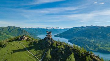 禾木村中所有的房屋都是朴素的小木屋,散乱地分布在山间的谷地里,当地少数民族同胞在院子里劳作着,显得古朴安静。禾木河在村旁流过,河水是浅蓝色,非常的清澈。村子周围还有草原、白桦林等,风光优美。冬天的时候,山顶处则开始积雪成为了一座座小雪山,好像一个童话世界。