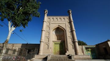库车大寺是新疆境内仅次于喀什艾提尕尔清真寺的第二大寺,距库车新城4公里。在库车老城区众多生土建筑中,库车大寺绿色的琉璃穹顶在阳光下显得格外夺目。大寺门楼高18.3米,全部青砖砌成,高耸的门楼与宣礼塔,庄严挺拔。塔柱雕以伊斯兰风格图案,穹窿式楼顶,形似天宇,寺内礼拜大厅1500平方米,可容纳3000人大礼拜。纵横8行的64根六棱形大柱,饰似彩雕绘画,支撑起由102块方格画图案组成的天花板,华丽壮观。